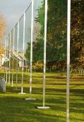 Pfosten/Lattenprofil 80x80 mm mit abgerundeten Ecken. Ausführung eloxiert, stabile und paßgenaue Alu-Gußform-Eckverbindungen, mit verstärkten Netzbügeln ø 40 mm aus Alu. Wartungsfreie und robuste Ausführung. Lieferung inkl. Netzhaken. Freistehend mit Bodenrahmen Wichtig für die Sicherheit